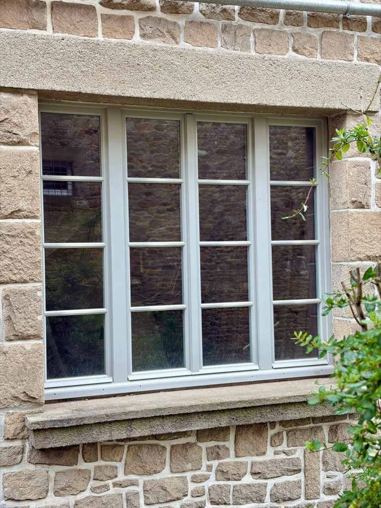 Nous vous présentons une réalisation JANNEAU Menuisier Créateur , avec la pose de fenêtres et portes-fenêtres BOIS, parfaitement intégrées à l’architecture existante.
