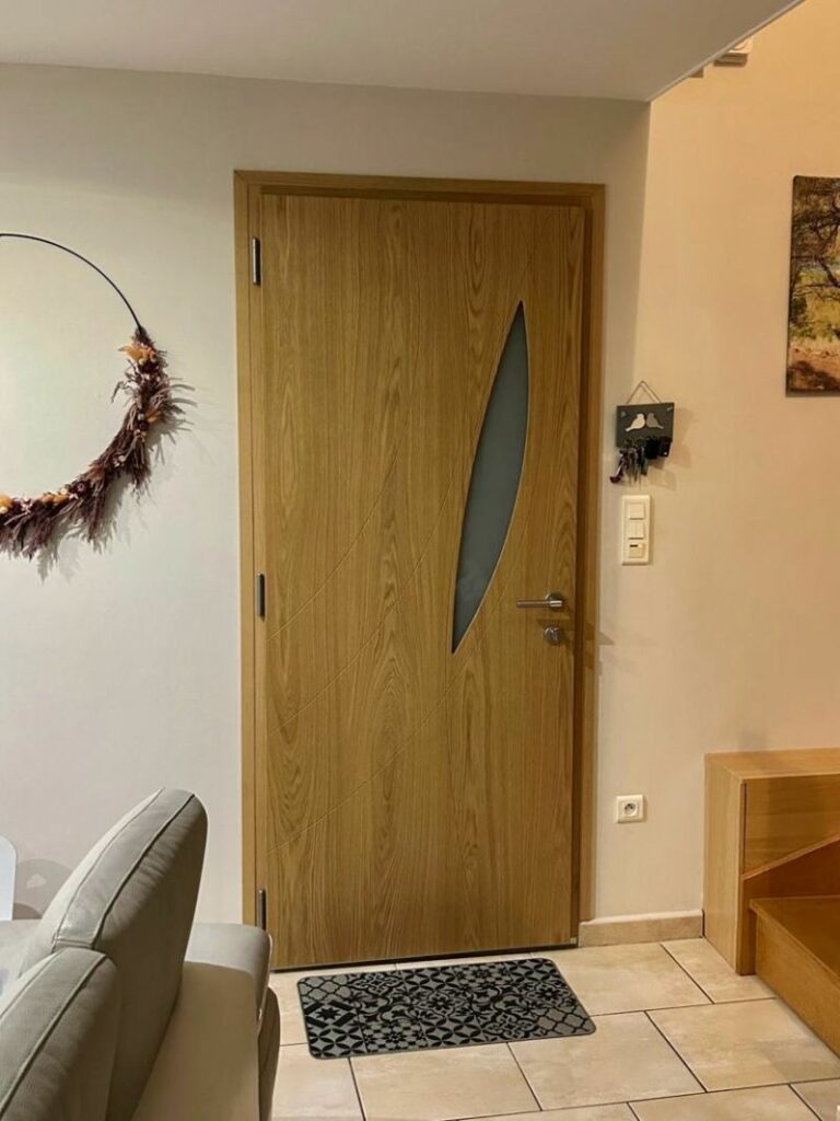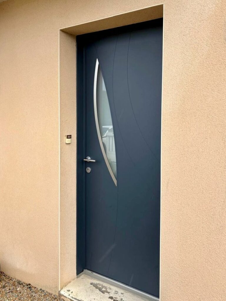 Nous vous présentons l’installation d’une porte d’entrée MéO (Groupe LIEBOT), à découvrir à travers une vue côté extérieur et un aperçu de sa finition intérieure.
